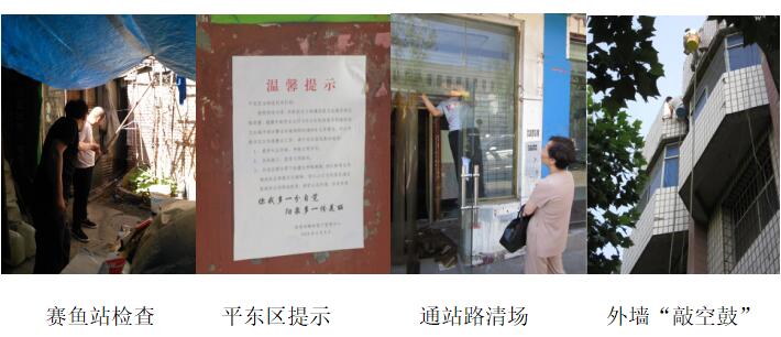 二、中心對租賃區(qū)、住宅樓、辦公樓等資產(chǎn)進(jìn)行安全檢查。月初,正式取締存有安全隱患的通站路保健品店租賃資格并完成清退清場;10日至11日,對中心辦公樓進(jìn)行外墻磚“敲空鼓”檢查并對青年路東口住宅樓等進(jìn)行外墻清洗;16日起對賽魚站進(jìn)行拆建改造。