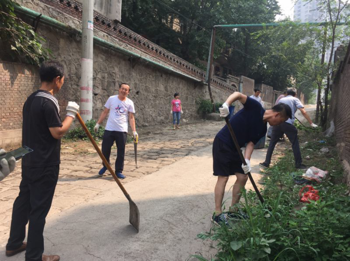 上午九時,公司全體在崗人員手持鐵鍬、斧頭等清掃工具,在公司領(lǐng)導(dǎo)的組織帶領(lǐng)下,分組包片對公司門前道路兩側(cè)的雜草以及周圍的垃圾、墻上的“牛皮癬”進(jìn)行了集中清理。雖然戶外的溫度超過了30℃,稍微一動就會汗流浹背,但大家都干勁沖天,邊干邊互相開著各種玩笑,不到一個小時,就使整個街道面貌煥然一新,路過的居民都豎起了大拇指,連稱OK!