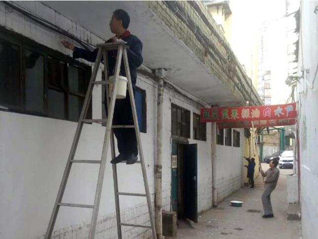 公司經濟效益低下,為了保證創(chuàng)衛(wèi)工作順利完成,2019年4月15日至18日、自行購買涂料、油漆和粉刷工具,組織全體在崗職工進行義務勞動,將公司的墻壁和門窗進行了徹底的清洗和粉刷。職工普遍年齡偏大、體弱多病,為了創(chuàng)衛(wèi)工作依然盡心盡力、任勞任怨。通過幾天的辛勤勞動,粉刷外墻和屋檐頂共計120多平米,使公司周邊環(huán)境面貌煥然一新。