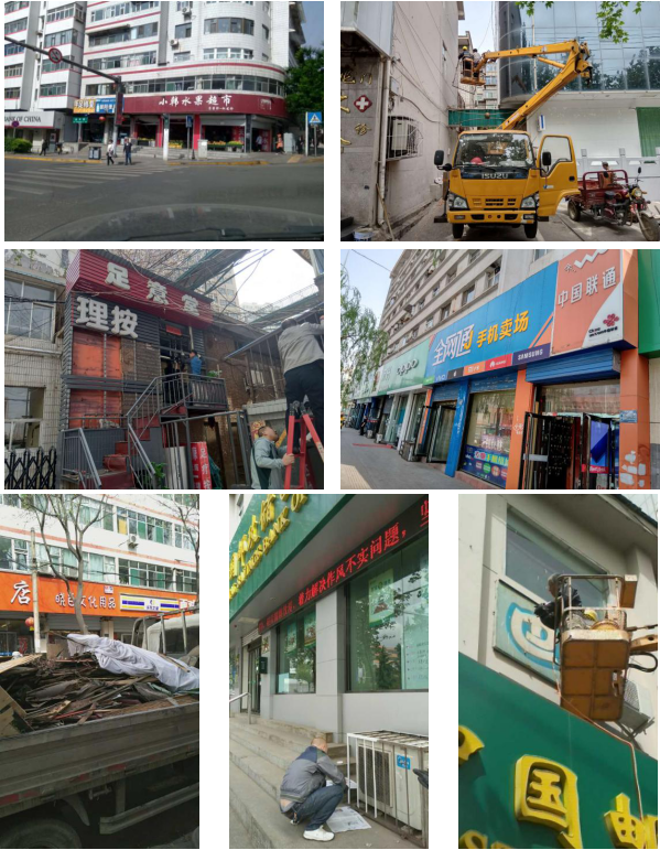 三、5月6日,中心完成機(jī)電樓底商空調(diào)外機(jī)罩粉飾上漆;5月8日,中心配合社區(qū),完成青年路東口小韓水果店廢舊廣告牌、燈管治理、煙道封堵;11日至12日,中心對(duì)機(jī)電辦公樓進(jìn)行樓頂修補(bǔ)與防護(hù)網(wǎng)、廣告牌拆除等工作。