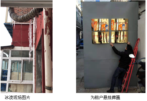 二、11月27日,中心接到反饋平東區(qū)5號(hào)樓居民太陽能管道結(jié)冰成冰凌,形成隱患,中心當(dāng)即安排物業(yè)管理人員前往處置,克服苦難,將冰凌全部安全去除,防患于未然。