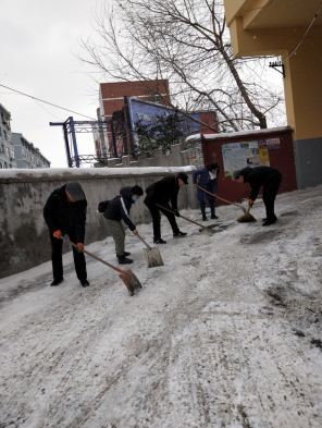 平東物資小區(qū)出口是個巷口且下坡急轉(zhuǎn)彎,地上的積雪極易造成出入車輛側(cè)滑、行人滑到現(xiàn)象。大家冒著雪,頂著料峭的寒風(fēng)用鐵鍬鏟、刮板推、掃帚掃,歷時1個多小時,徹底清理了路面的積雪,小小舉動,卻溫暖了駐地居民的心,進(jìn)出的車輛鳴笛致意,路過的居民紛紛伸出大拇指為大家點贊。黨史學(xué)習(xí)教育開展以來,公司黨支部多次組織黨員職工在小區(qū)內(nèi)開展義務(wù)勞動,服務(wù)小區(qū)居民,此次活動是一個縮影,類似的活動已經(jīng)成為黨支部工作的一項常態(tài)。