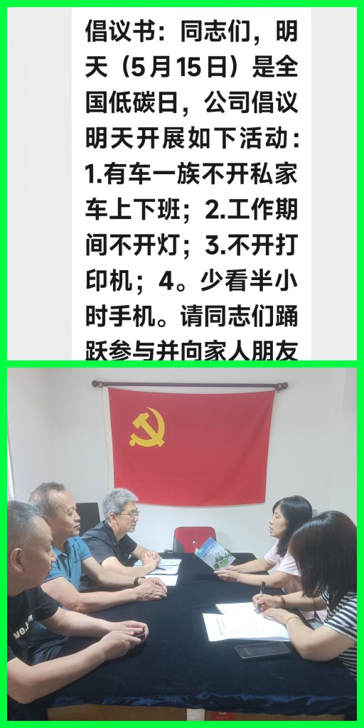 按照市工信局《關(guān)于開展2024年陽泉市節(jié)能宣傳周活動的通知》文件要求和華皓物資集團(tuán)公司相關(guān)通知要求,再生公司在2024年“節(jié)能宣傳周”和“全國低碳日”期間,圍繞“綠色轉(zhuǎn)型、節(jié)能攻堅(jiān)”和“綠色低碳、美麗中國”主題開展了系列活動。一是5月16日組織職工開展了“節(jié)能降碳”知識集體專題學(xué)習(xí),學(xué)習(xí)了“實(shí)現(xiàn)碳中和會給生活帶來什么變化?”“低碳生活無處不在”“如何低碳使用家電”等節(jié)能知識,目標(biāo)是培養(yǎng)職工低碳生活節(jié)能意識。二是在公司范圍內(nèi)發(fā)出倡議通知,動員職工以實(shí)際行動踐行低碳綠色理念,具體行動包括:有車一族至少一天不開私家車上下班;工作期間不開燈、一天不開打印機(jī),少看半小時(shí)手機(jī)等。職工參加倡議活動積極性很高,同時(shí)也以實(shí)際行動向家人和朋友做好低碳生產(chǎn)生活宣傳。三是利用微信工作群轉(zhuǎn)發(fā)收看了生態(tài)環(huán)境部發(fā)布的“綠色低碳 美麗中國”2024年“全國低碳日”等視頻宣傳片。