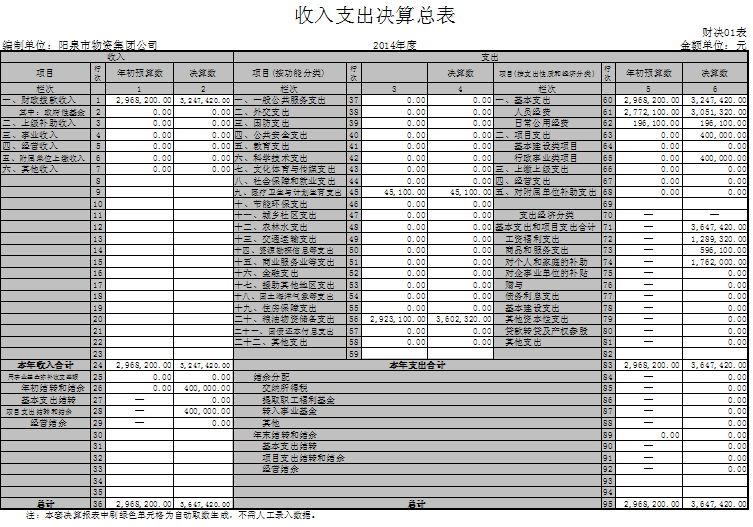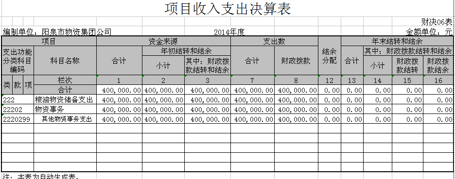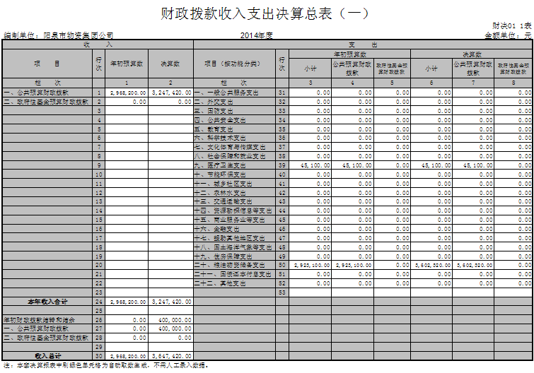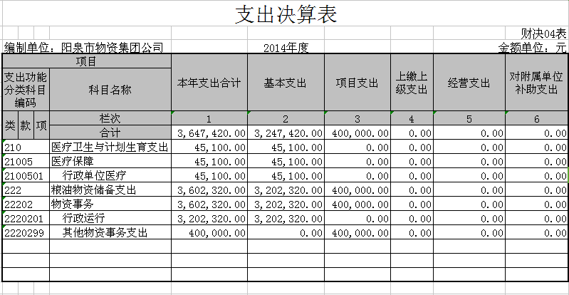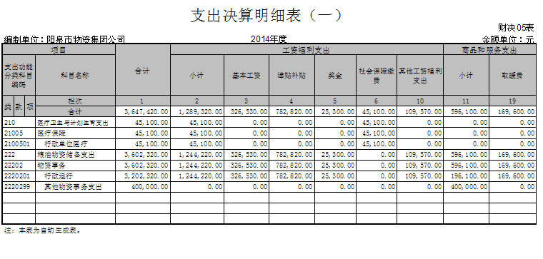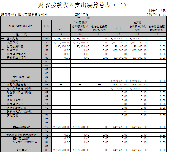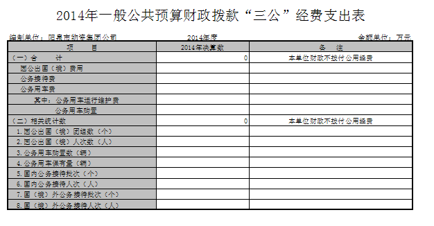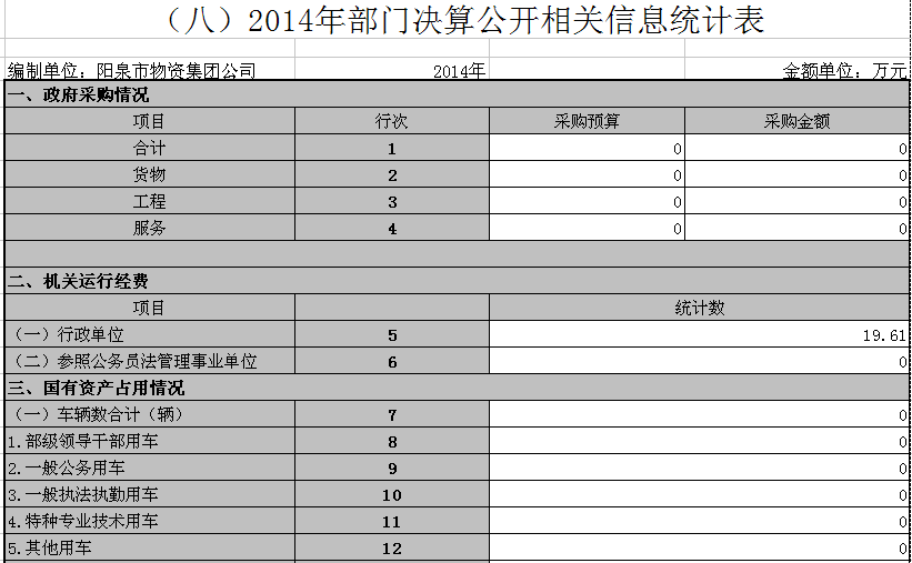 陽泉市物資集團公司2014年部門決算公開