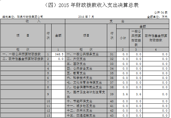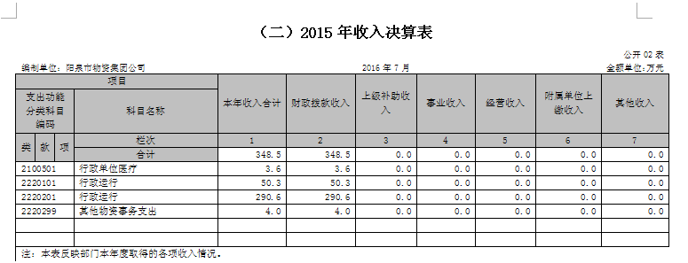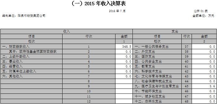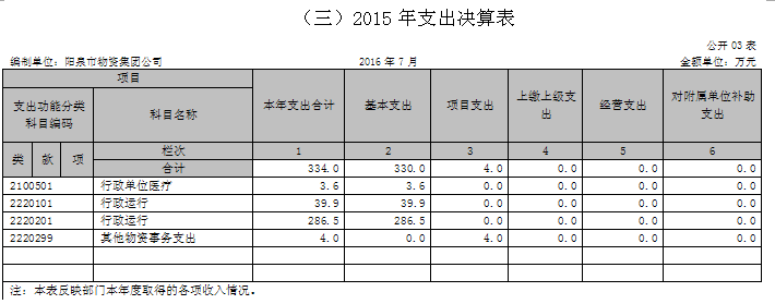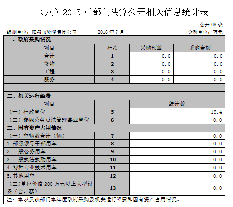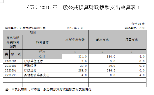 陽泉市物資集團(tuán)公司2015年部門決算公開
