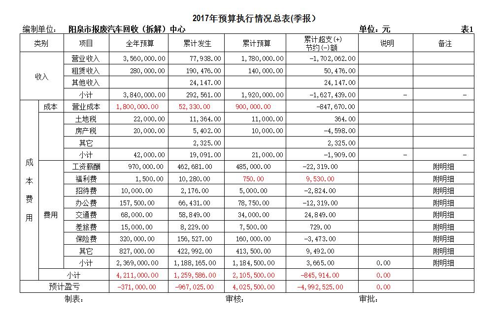 四、2017年1-6月預算執(zhí)行情況表(如下表)