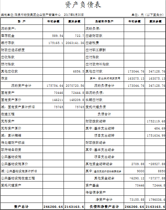 企業(yè)資產(chǎn)管理中心2017年上半年信息公開(kāi)資料