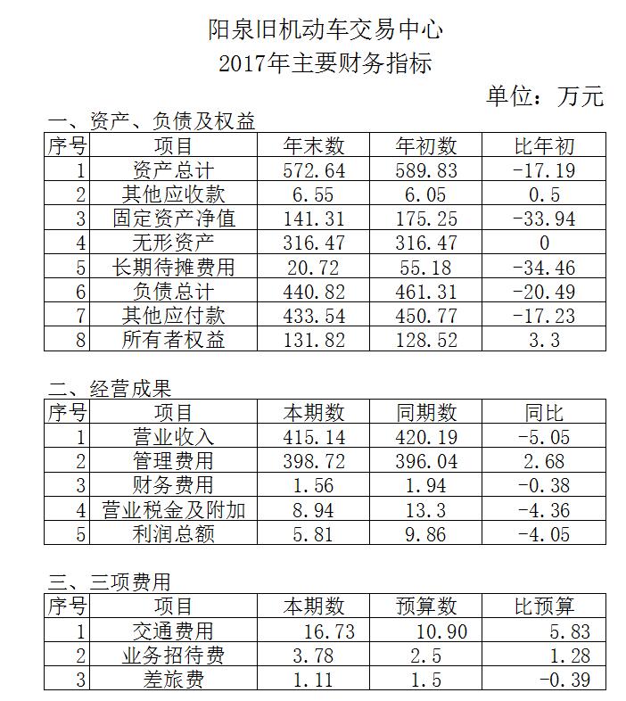 陽(yáng)泉舊機(jī)動(dòng)車交易中心2017年信息公開