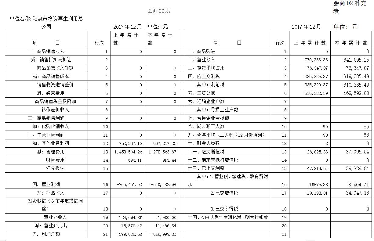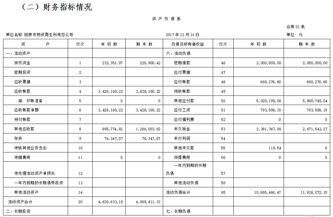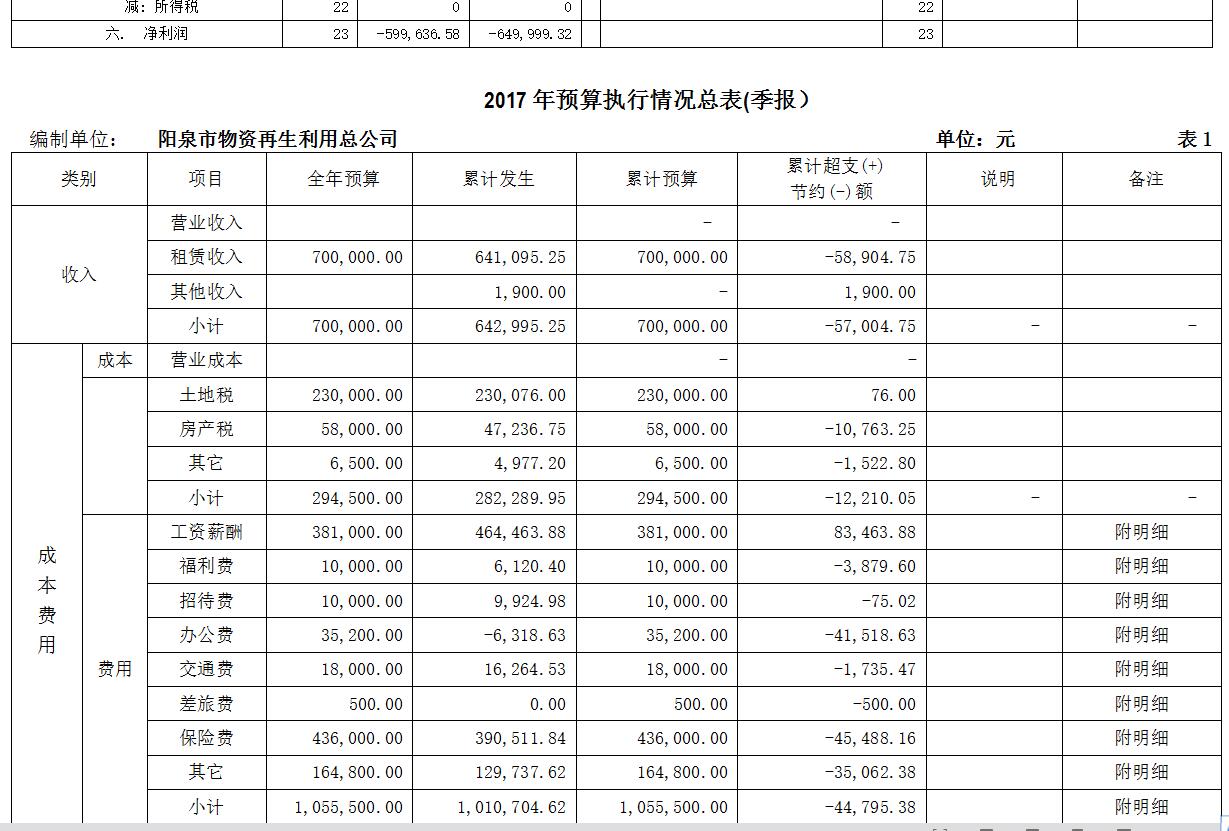 2017年,物資再生利用總公司以習(xí)近平總書記系列重要講話為指導(dǎo),緊緊圍繞“止滑向好”的主旋律,在集團(tuán)公司支持下,本著穩(wěn)中求進(jìn)的工作基調(diào),沉著應(yīng)對環(huán)保壓力緊逼、主營業(yè)務(wù)停滯、資金周轉(zhuǎn)困難、銀行賬戶凍結(jié)、成本費(fèi)用難壓等諸多不利因素,正確決策、凝心聚力、辛苦拼搏,實(shí)現(xiàn)收入64.3萬元(全部為租賃收入),比年初預(yù)算70萬元減少了5.7萬元,減少的主要原因是環(huán)保壓力致部分場地退租;利潤虧損65萬元,與年初集團(tuán)公司下達(dá)任務(wù)相當(dāng),費(fèi)用支出101 萬元,比年初預(yù)算節(jié)約4.5 萬元。年末職工人數(shù)88人,在職職工和內(nèi)養(yǎng)人員工資正常發(fā)放,全部職工醫(yī)療、失業(yè)保險(xiǎn)也都如期上繳,為三名到齡職工如期辦理退休;全年沒有發(fā)生一起安全事故,隱患治理率和危險(xiǎn)源監(jiān)控管理率均達(dá)到100%。