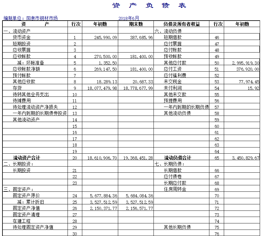 1.截止2018年6月30日鋼材市場資產(chǎn)總額2152.50萬元,負(fù)債總額421.10萬元,所有者權(quán)益1731.40萬元。