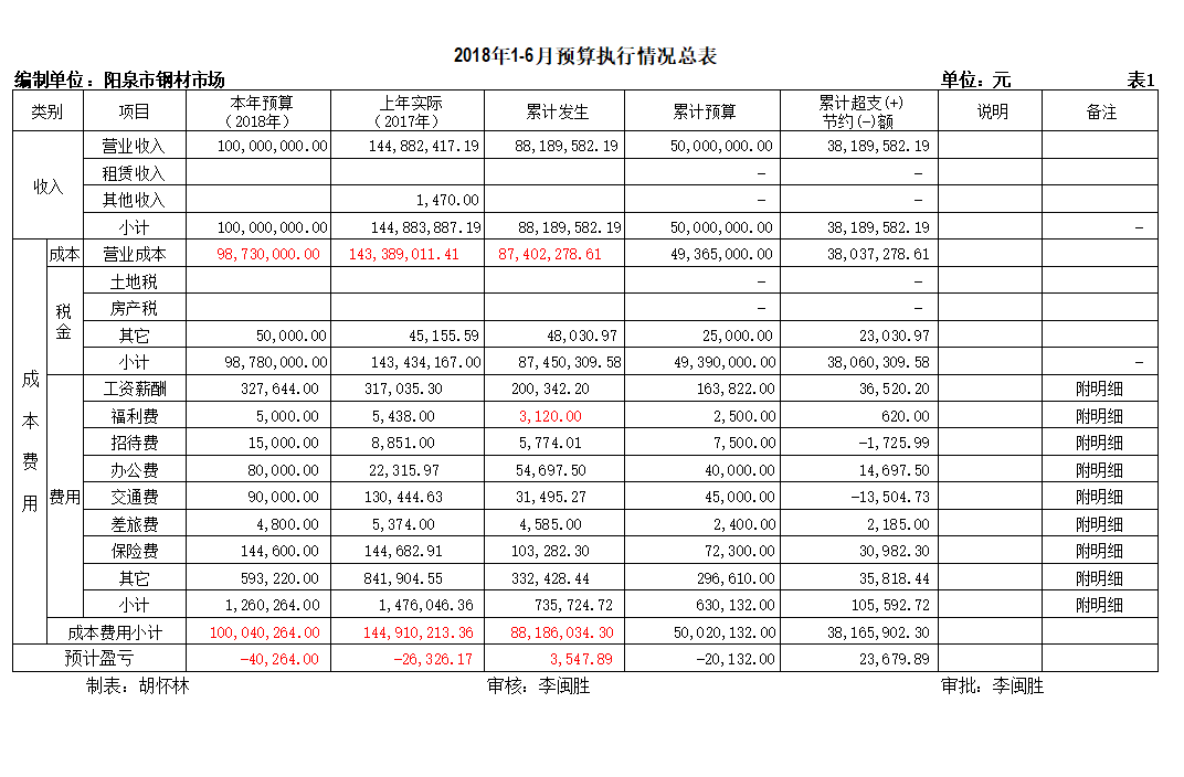 2018年是預(yù)算化管理全面監(jiān)控的年代,預(yù)算化管理對企業(yè)起著實時監(jiān)控,隨時監(jiān)管的重要作用。截止2018年6月30日我市場銷售收入88189582.19元,完成全年預(yù)算1億元的88.19%。這是在當(dāng)前生產(chǎn)資料市場環(huán)境整體低迷,銷售萎縮的情況下取得的,實屬不易。目前行政性費用實際發(fā)生735724.72元,占預(yù)算1260264元的58.37%??鄢崛⌒再M用16萬元,實際是預(yù)算的45.68%,真正實現(xiàn)了銷售收入全面過半,費用監(jiān)控下降4.32%的良性運行狀態(tài)。其中:1.工資性費用:20.03萬元。2.業(yè)務(wù)招待費性費用:0.58萬元。3.辦公性費用:5.47萬元。4.三項保險性費用:10.33萬元。5.各類修理性費用:3.15萬元。6.其它性費用:33.24萬元。利潤實現(xiàn)0.35萬元。當(dāng)前的費用性支出、利潤控虧屬于良性運行狀態(tài),能全面實現(xiàn)2018年預(yù)算的如期完成。