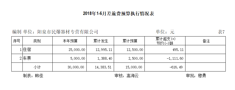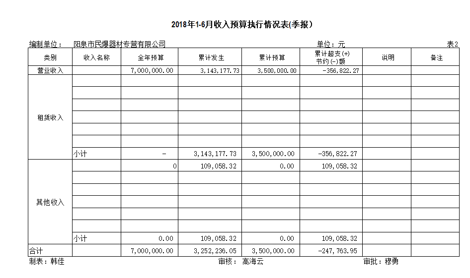 陽泉市民爆器材專營有限公司2018年上半年信息公開資料