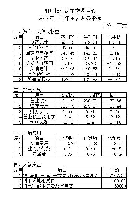 陽泉舊機(jī)動(dòng)車交易中心2018上半年信息公開
