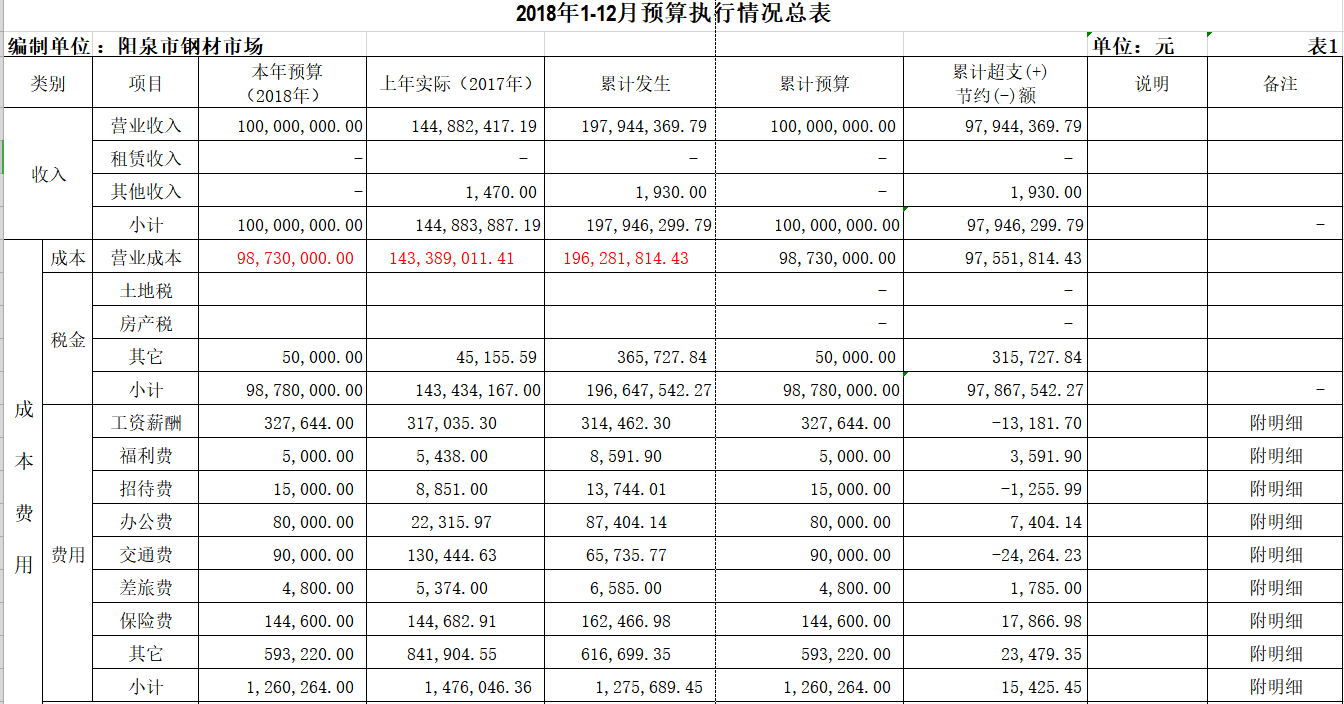 鋼材市場(chǎng)2018年度月財(cái)務(wù)預(yù)算完成分析