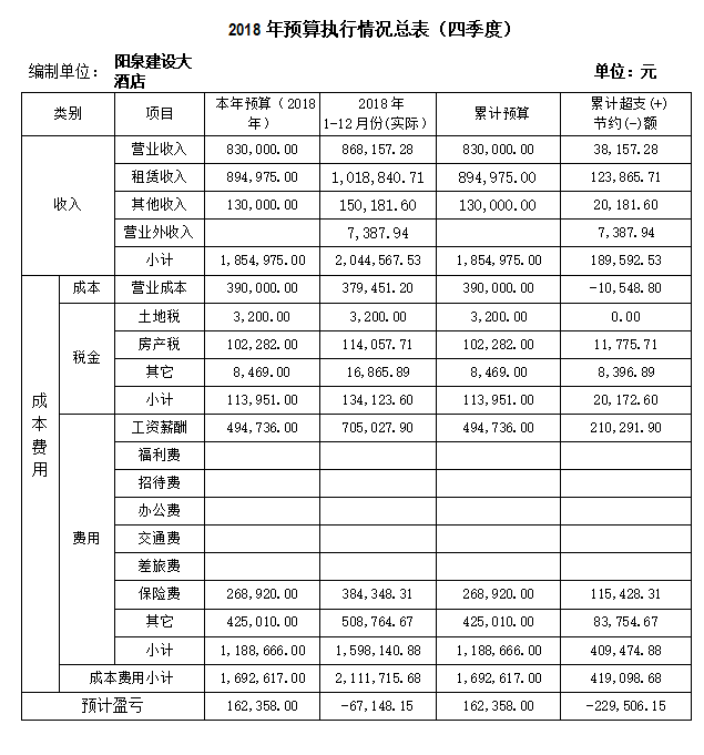2018年建設(shè)大酒店營(yíng)業(yè)收入為203.7萬元,比上年同期增加2%;營(yíng)業(yè)成本為37.9萬元,銷售費(fèi)用為87萬元,管理費(fèi)用為72.7萬元,上繳稅金為13.4萬元;營(yíng)業(yè)利潤(rùn)為-7.5萬元。全年職工工資按時(shí)發(fā)放,醫(yī)療保險(xiǎn)足額上繳,養(yǎng)老保險(xiǎn)交至2018年2月底。職工全年平均工資為1740元,與去年同期持平。