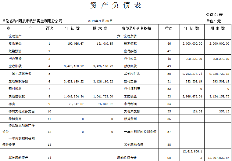截止9月30日,物資再生利用總公司實(shí)現(xiàn)收入總額60萬元,完成全年預(yù)算的77%,比去年同期74萬元減少了14萬元;發(fā)生費(fèi)用95.7萬元,完成全年預(yù)算的78%,比去年同期112.4萬元減少16.7萬元;利潤-35.7萬元,完成全年預(yù)算-68萬元的53%,比去年同期-38.4萬元減虧2.7萬元;在崗人員工資按陽泉市2015年最低標(biāo)準(zhǔn)按時(shí)發(fā)放,“40、50”人員、內(nèi)退人員工資也按月發(fā)放。為2名達(dá)退休年齡職工辦理了退休手續(xù) 。