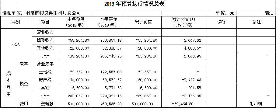 截止12月31日,物資再生利用總公司實現(xiàn)收入總額78.67萬元,完成全年預(yù)算78.39萬元的100.36%,比去年同期84.61萬元減少了5.94萬元;發(fā)生費用146.31萬元,完成全年預(yù)算146.39萬元的99.95%,比去年同期132.38萬元增加了13.93萬元;利潤-67.64萬元,完成全年預(yù)算-68萬元的99.47%,比去年同期-47.77萬元增虧19.87萬元;在崗人員工資按陽泉市2015年最低標準按時發(fā)放,“40、50”人員、內(nèi)退人員工資也按月發(fā)放。全部職工醫(yī)療、失業(yè)保險也都如期上繳,為2名(全年累計6名)到齡職工如期辦理了退休手續(xù);向郊區(qū)檔案館移交了五名退休職工檔案;公司轉(zhuǎn)型取得較大進展;公司制改制工作先機完成 。
