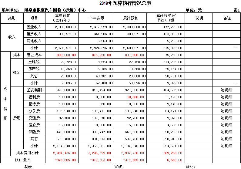 1-12月份,經(jīng)營(yíng)收入 248 萬元,其他收入 44 萬元,收入合計(jì) 292 萬元,完成年度預(yù)算 260 萬元的 112.3% ;利潤(rùn) -37 萬元,完成年度利潤(rùn) -37 萬元的 100% ;發(fā)生成本費(fèi)用 329 萬元,完成預(yù)算 299萬元的110.0%;在崗人員工資按照不低于2019年陽泉市最低標(biāo)準(zhǔn)按時(shí)發(fā)放。