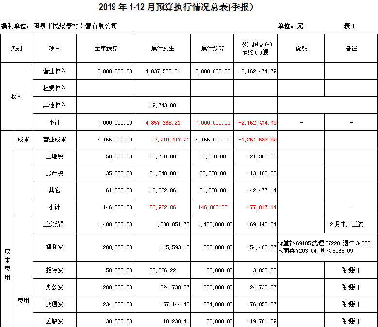 二、2019年1-12月份財(cái)務(wù)預(yù)算