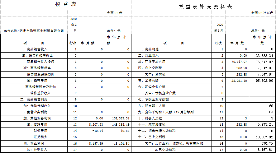 截止3月31日,物資再生利用有限公司因政府土地收儲、疫情等疊加原因,收入總額為13.3萬元,比去年同期23.4萬元銳減10.1萬元,完成年預(yù)算44萬元的30%;發(fā)生各項費用14.6萬元,比去年同期37.6萬元減少23萬元,完成年預(yù)算112萬元的13%;利潤-1.3萬元,比去年同期-15.8萬元減虧14.5萬元;在崗人員工資按陽泉市現(xiàn)行最低標(biāo)準(zhǔn)按時發(fā)放,“40、50”人員、內(nèi)退人員工資也按月發(fā)放。
