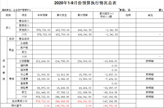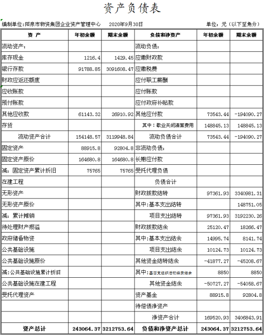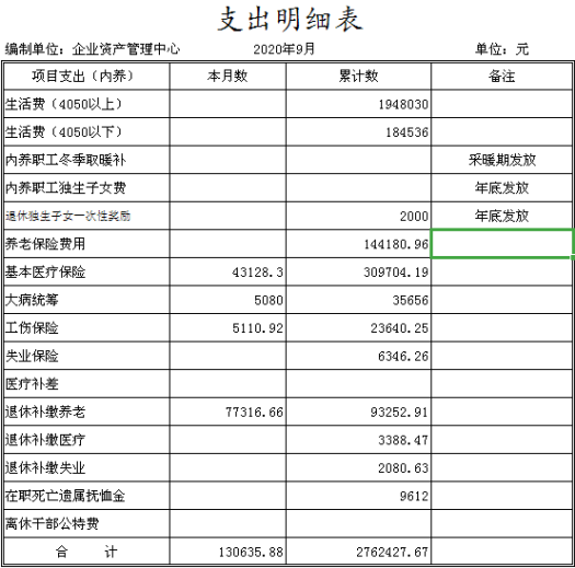 陽泉市物資集團(tuán)公司企業(yè)資產(chǎn)管理中心成立于2014年11月,是物資集團(tuán)公司原化輕總公司等七家歇業(yè)關(guān)閉企業(yè)的留守機(jī)構(gòu),隸屬于陽泉市物資集團(tuán)公司。截止9月份底,企業(yè)總?cè)藬?shù)657人,其中在冊(cè)職工319人,離退休職工338人。在冊(cè)職工按照年齡結(jié)構(gòu)劃分“40、50”以下人員117人,“40、50”以上人員202人。在冊(cè)職工生活和社保等費(fèi)用享受財(cái)政補(bǔ)貼。1-9月份發(fā)放內(nèi)養(yǎng)人員生活費(fèi)214萬元,繳納養(yǎng)老保險(xiǎn)14萬元,繳納醫(yī)療保險(xiǎn)35萬元,為24名到齡退休人員辦理了退休手續(xù)。現(xiàn)將三季度財(cái)務(wù)狀況及支出情況公示如下: