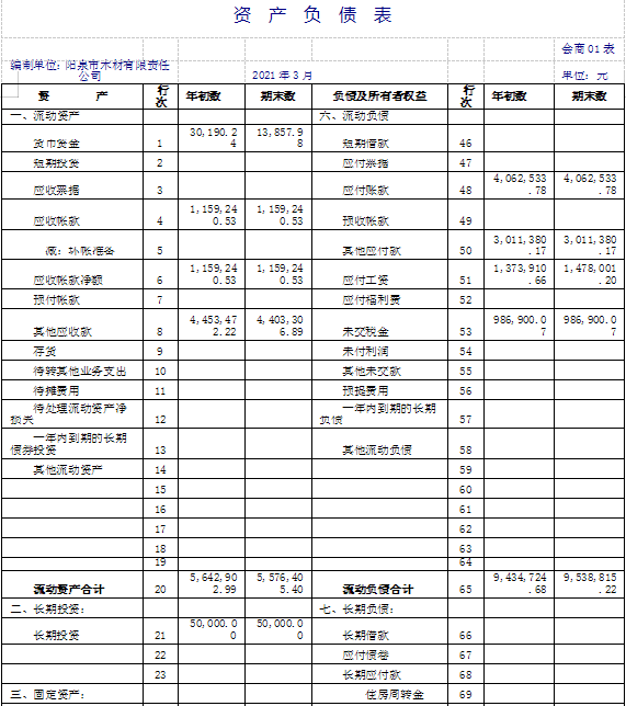 陽泉市木材有限責(zé)任公司2021年第一季度信息公開