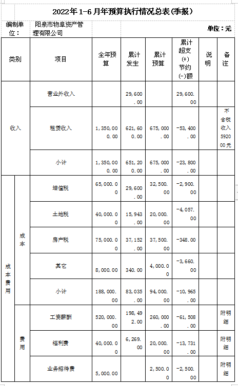 2022年上半年,物阜資產(chǎn)管理有限公司在華皓物資集團(tuán)有限責(zé)任公司的正確領(lǐng)導(dǎo)下,圍繞疫情防控、安全管理、資產(chǎn)租賃、為群眾辦實(shí)事等重點(diǎn)工作,全體人員共同努力,出色地完成了各項(xiàng)任務(wù),租賃收入基本穩(wěn)定。全年計(jì)劃收入135萬(wàn)元,截止6月底實(shí)現(xiàn)租賃收入62.16萬(wàn)元,營(yíng)業(yè)外收入2.96萬(wàn)元(減免稅轉(zhuǎn)入營(yíng)業(yè)外收入形成),完成年計(jì)劃48.2 %。1-6月,上繳稅金8.3萬(wàn)元,同時(shí)實(shí)現(xiàn)了安全運(yùn)營(yíng)無(wú)事故。