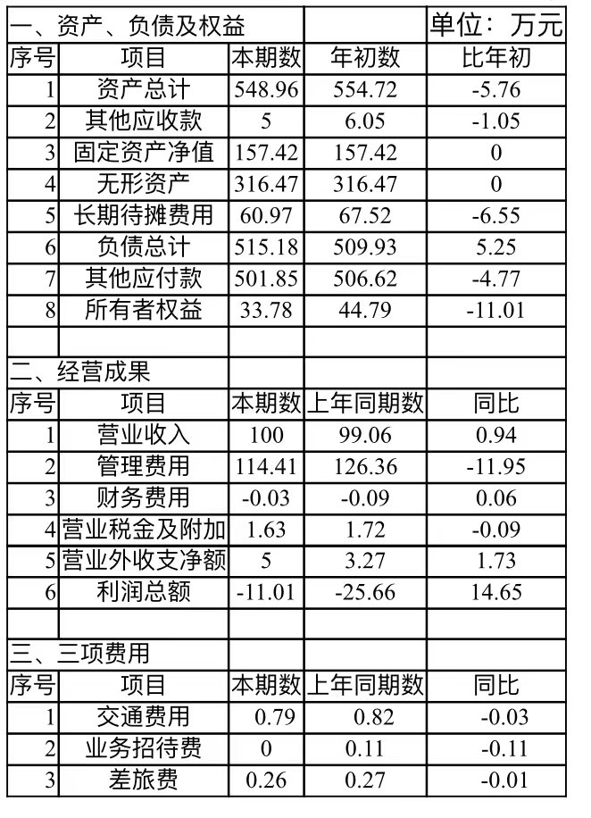 1、三季度營業(yè)收入100萬元,比上年同期99.06萬元增加0.94萬元;管理費用114.41萬元,比去年同期126.36萬元減少11.95萬元。